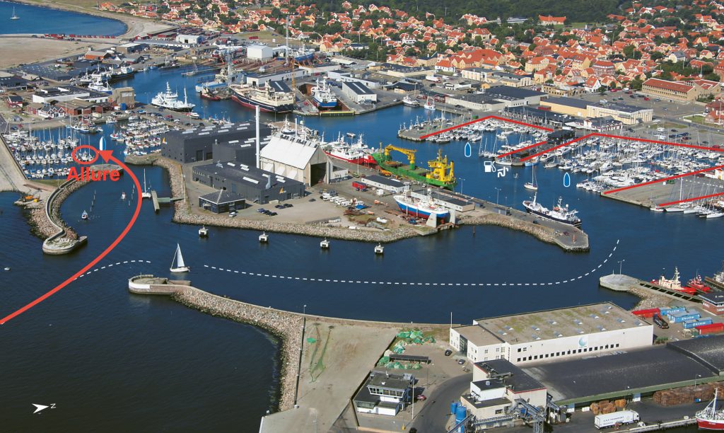 Die Alternative wären die großen Hafenbecken (rechts – rot umrandet … die eigentlichen Gästeplätze) gewesen – hier wird ‘gepäckelt’ bis der Hafen voll ist! Und das zeichnete sich bereits am Freitagabend ab … Wochenende und ‘Sankt Hans Aften’ naht (Mittsommerfest in 🇩🇰).