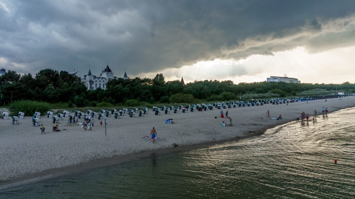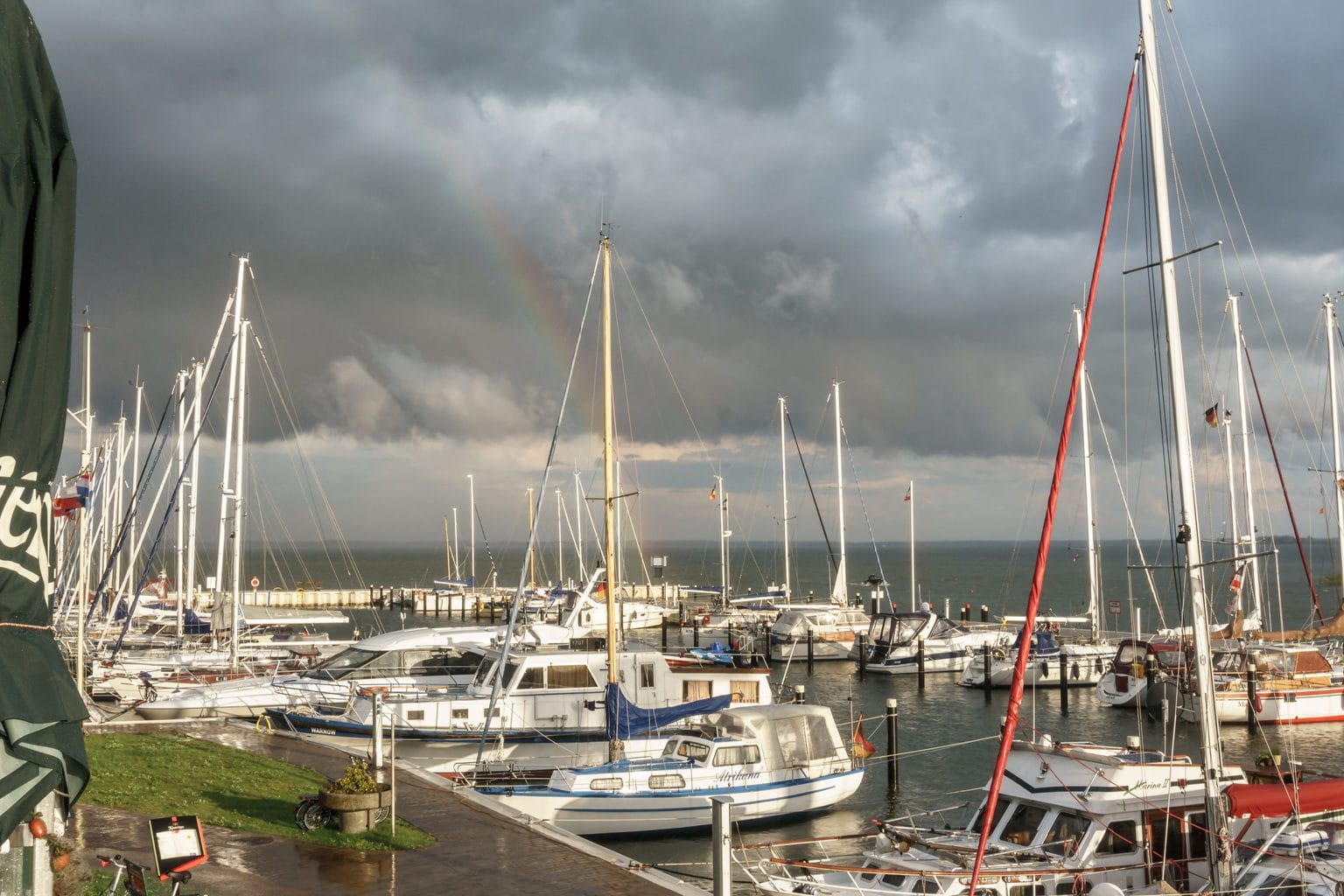 Zinnowitz hat einen gemütlichen Yachthafen am sog. ‚Achterwasser‘, das Seebad selbst – mit der typischen Bäderarchitektur – liegt an der Ostseeküste der Insel Usedom. Der Schnee in Zinnowitz (s. Blog vom 29.7.) ist mittlerweile geschmolzen und es herrscht viel Trubel am Strand und auf der Promenade (Hochsaison😏). Turbulent ist ebenso das Wetter – es weiß heute auch am Abend noch nicht, was es will – Wetterkapriolen vom Feinsten.