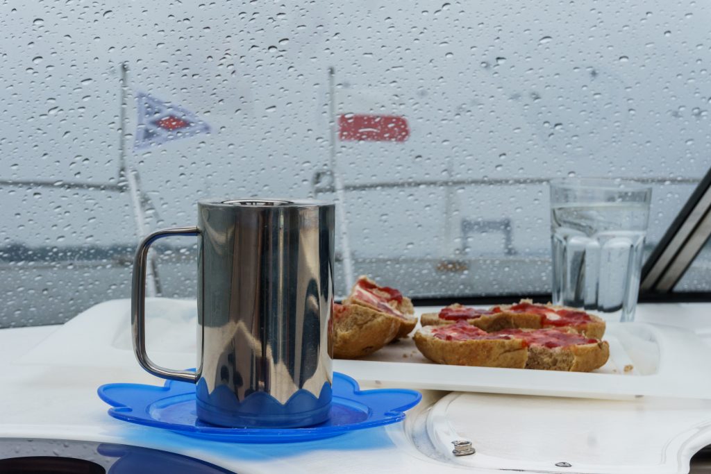 Nach ein paar heißen Tagen in Polen starten wir unseren Törn heute relativ früh bei Nieselregen und schwachem Wind in Richtung Haff.