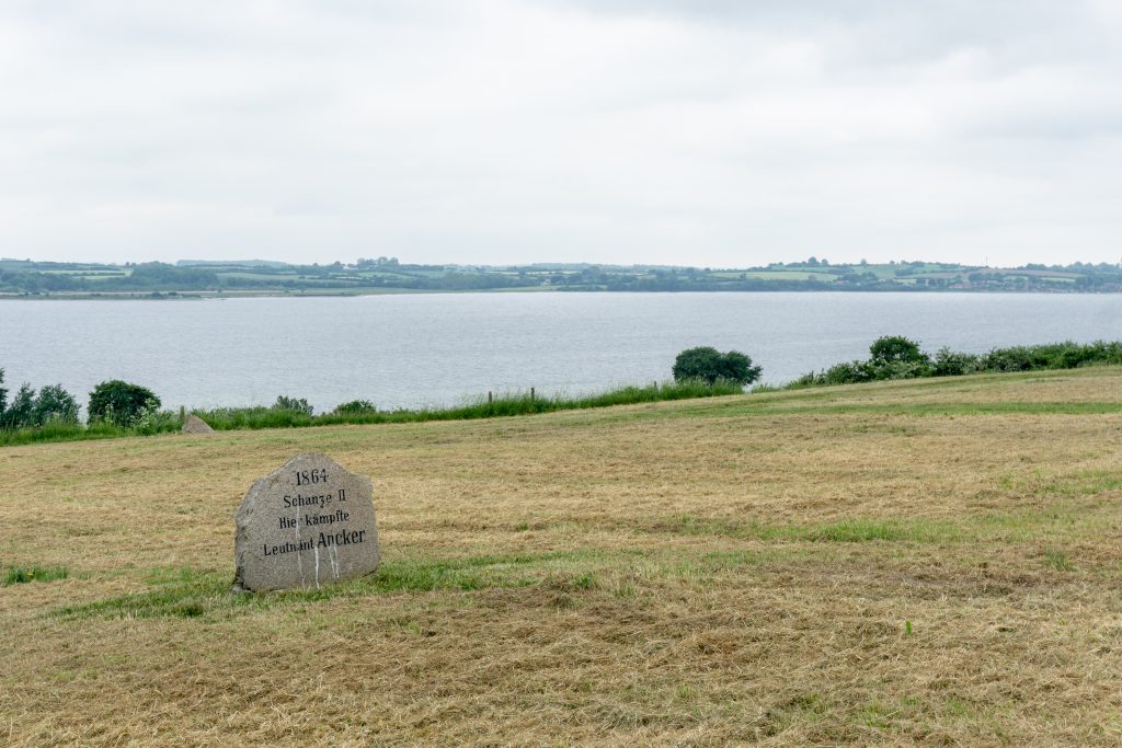 Unsere Komoot-App findet wieder einen tollen Radweg. Wir befahren den ‚Gendarmenstien‘ auf der Halbinsel Broager immer der Küstenlinie entlang. Eigentlich ein Wanderweg, der früher zur Überwachung der dänischen Landesgrenze diente. Entlang der Strecke finden wir historische Denkmäler, die an die Ereignisse des preußisch-dänischen Krieges 1864 erinnern. So z.B. die Dybbøl Mühle auf den Schanzen und das umliegende Schlachtfeld auf der Halbinsel Broager mit unzähligen Gedenksteinen.