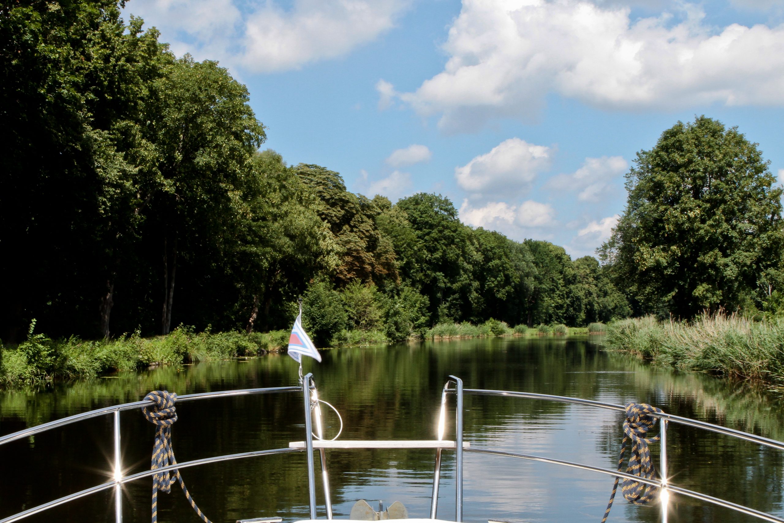 Ganz gemütlich (offiziell 9km max.) schippern wir weiter auf der Oberen Havel, durch malerische Landschaften, durch unberührte Natur, durch zwei weitere Selbstbedienungsschleusen.