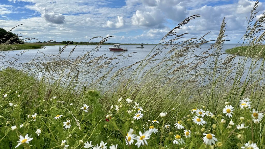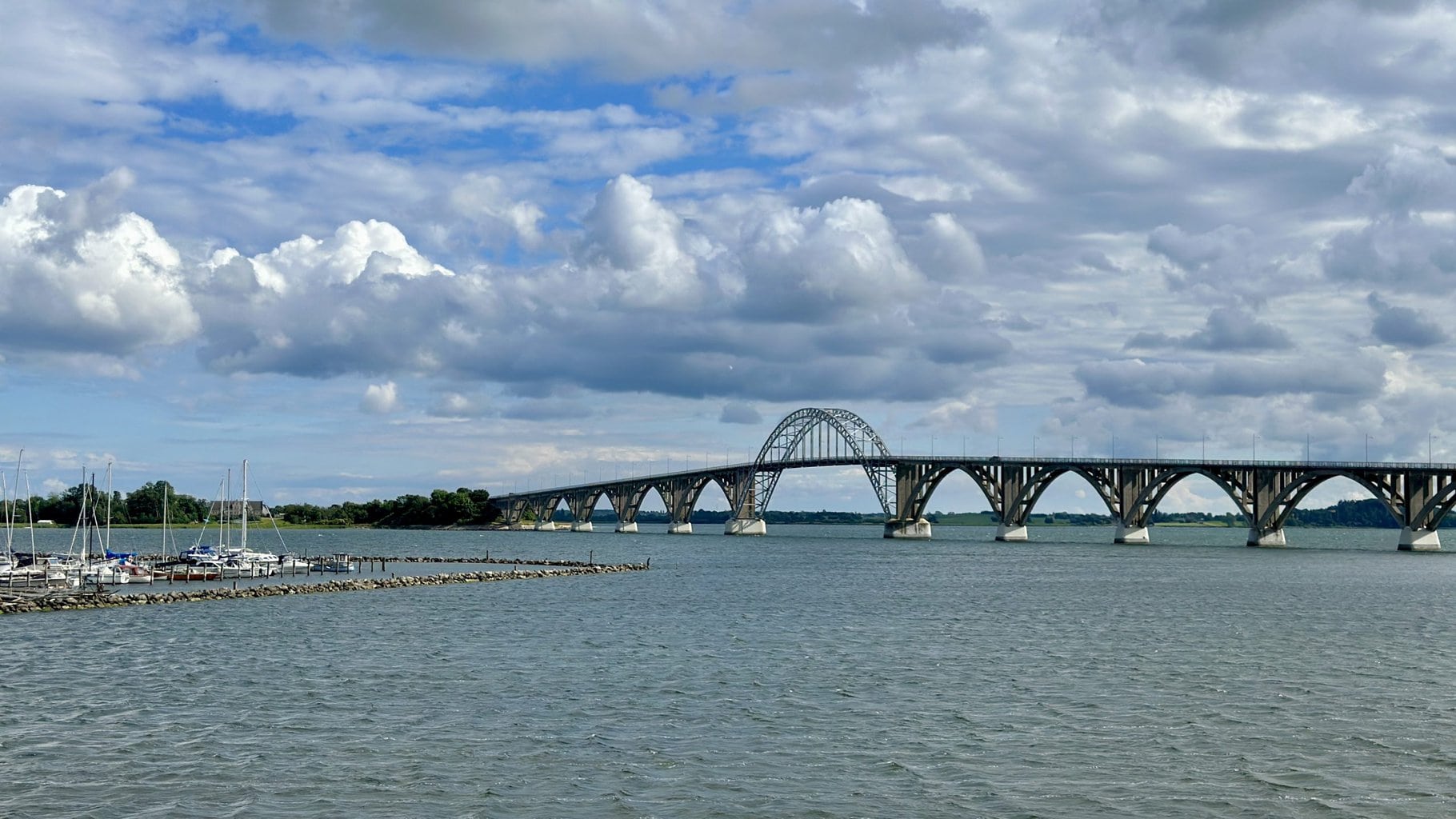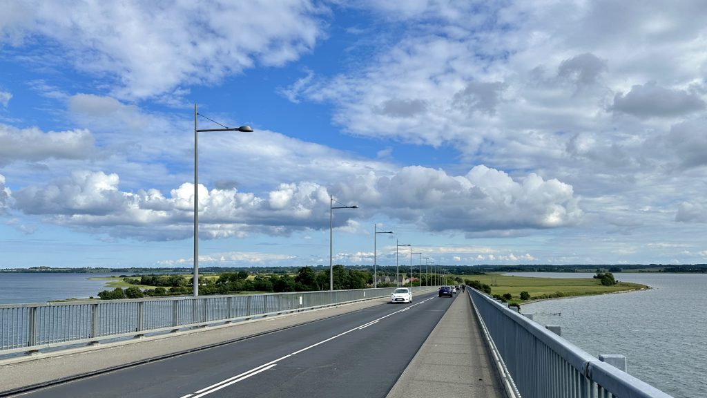 Bei Kalvehave fahren wir über die Dronning Alexandrines Brücke, die wir passiert haben auf unserem Weg zur Insel Møn – nur 12 km entfernt von unserem Hafenplatz in Stege.