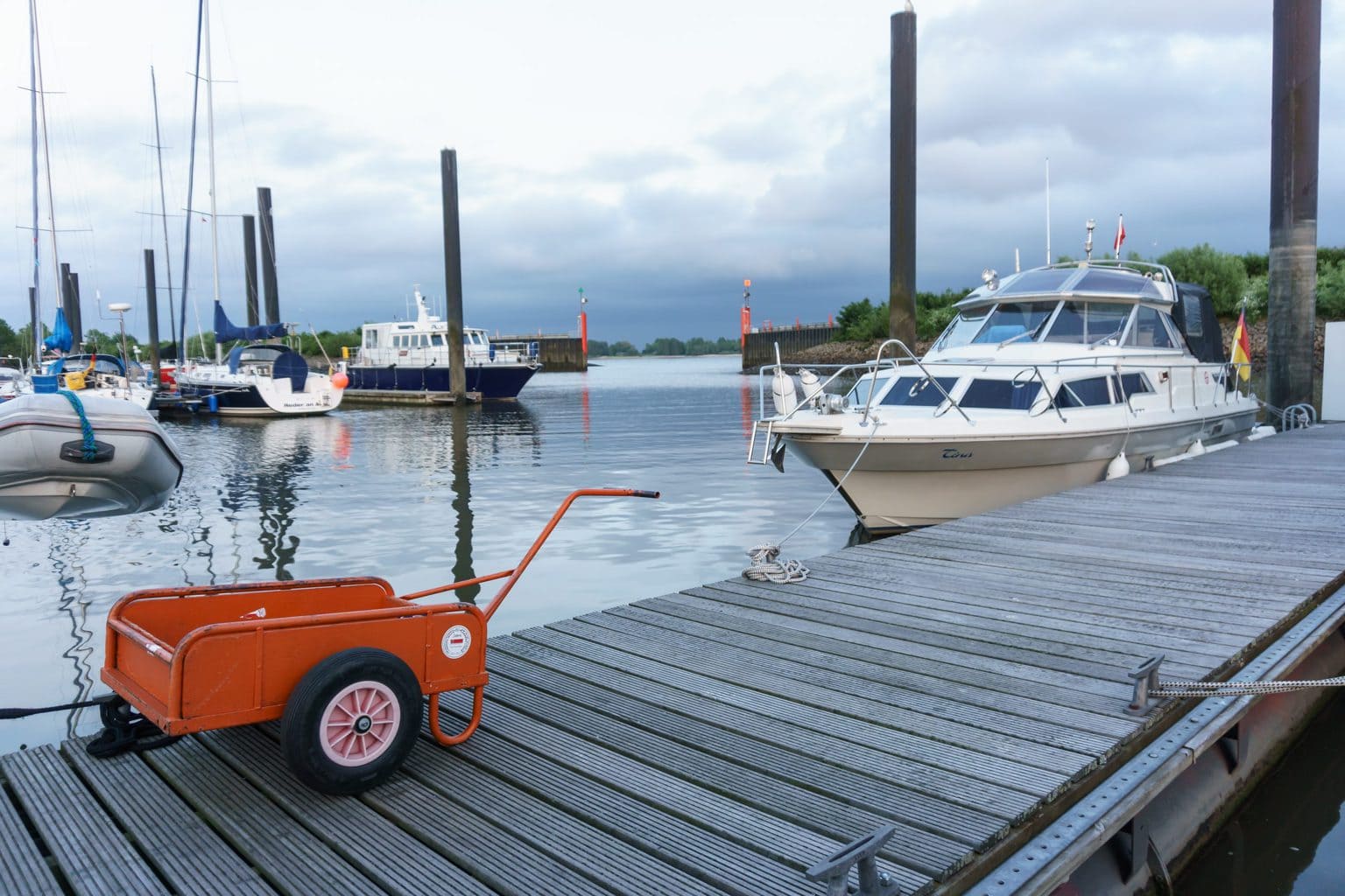 Mit 2000 Liegeplätzen ist der Hamburger Yachthafen in Wedel unser nächstes Ziel. Und es ist sogar noch ein Plätzchen für uns Pfälzer Bootsvagabunden frei.