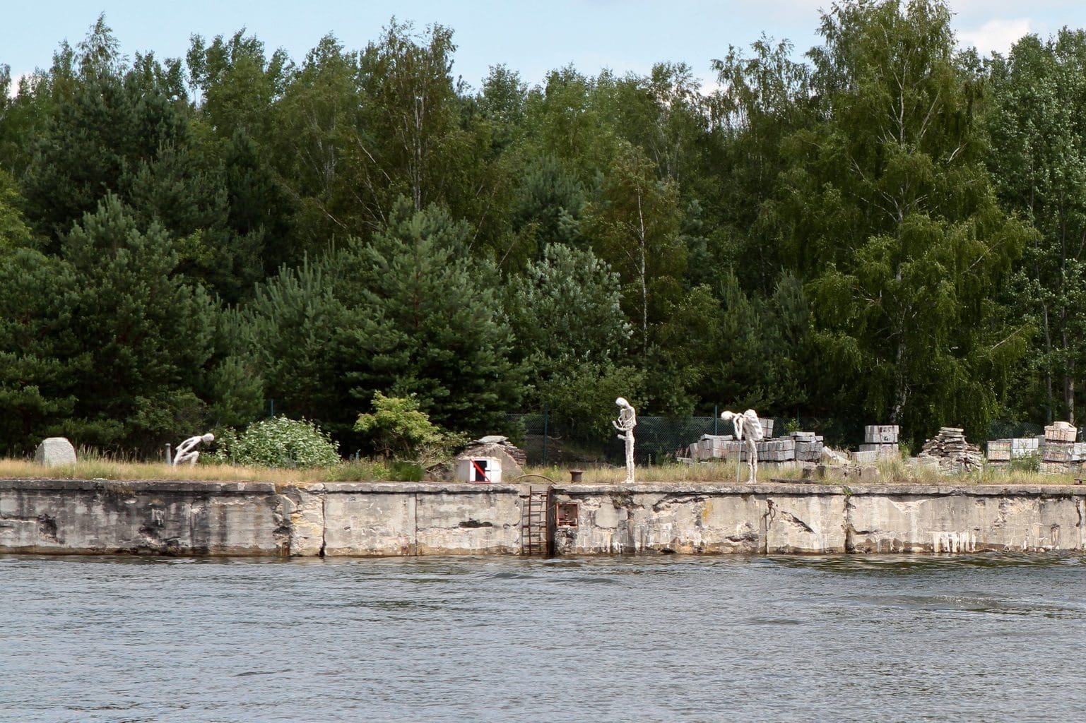 an Steuerbordseite eine Figurengruppe im ehemaligen KZ-Außenlager-„Klinkerwerk“ Sachsenhausen.