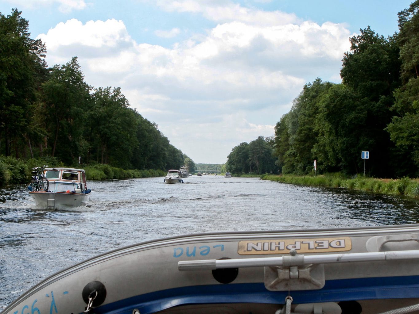 Die fast unerträgliche Schwüle der letzten Tage ist verschwunden, es ist Sonntag und es sind jede Menge Freizeitskipper unterwegs. Wir verlassen Oranienburg.