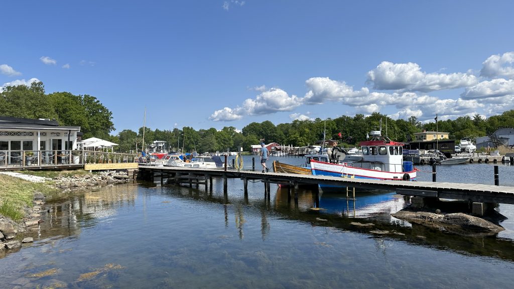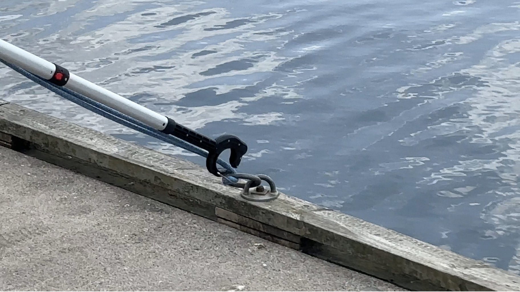 In schwedischen Häfen ist die Heckboje die übliche Festmachmethode in den Häfen. Doch wie fädelt man die Leine beim Anlegemanöver von Bord aus durch die Öse der Bojen? Die Arme sind immer zu kurz. Ein netter schwedischer Seglernachbar demonstrierte uns das supereinfache Anlegen mit seinem Hook & Moor Teleskop-Bootshaken. Verkaufen wollte er ihn an uns allerdings nicht. Also stand der Yachtshop hier in Vägga auf unserer Liste. Dort wartete der Haken (telefonisch von ihm vorbestellt) schon auf uns.