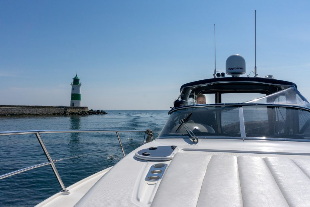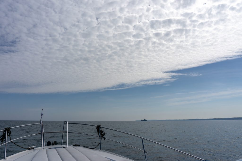 Raus aus der Eckernförder Bucht der Küste entlang bei herrlichem Sommerwetter zum einstigen Handelsweg der Wikinger – der Schlei – und anlegen im Sportboothafen Maasholm. So ist der heutige Plan.