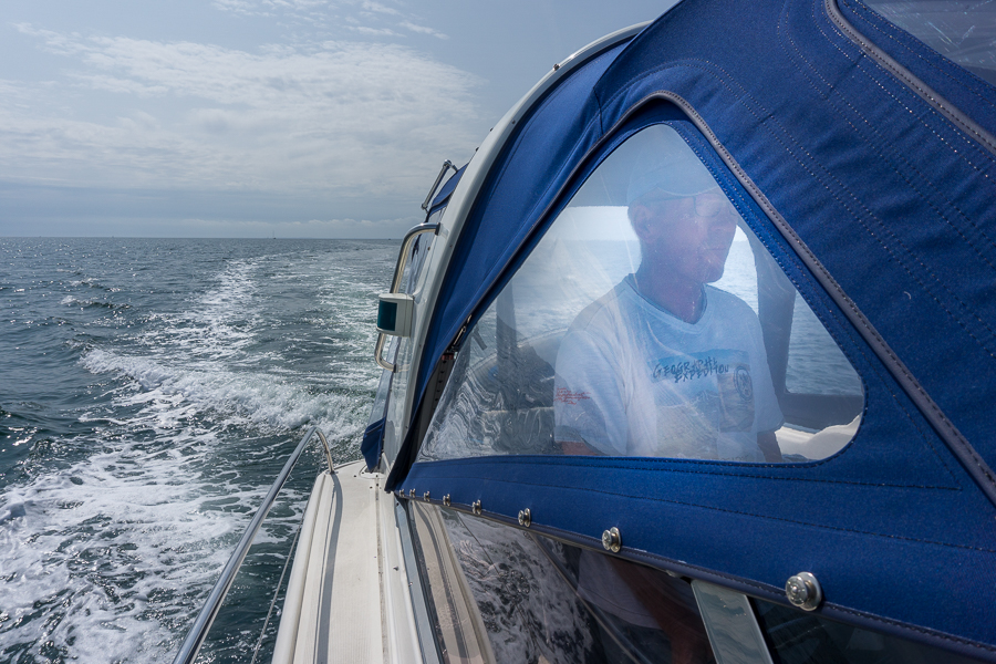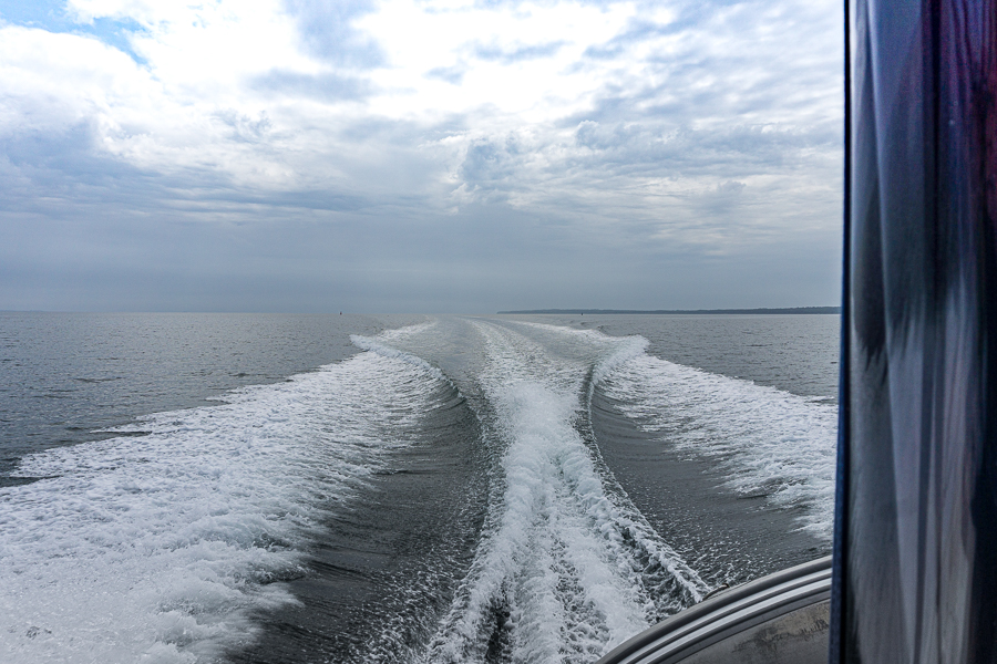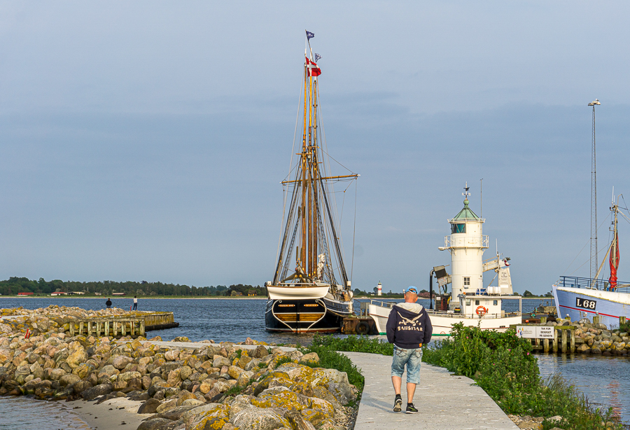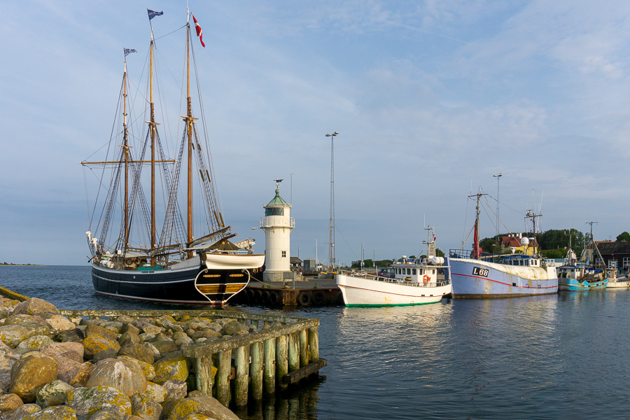 Das Wetter heute passt und los geht’s auf glattem Wasser in Richtung NW in den Hafen Årøsund am Lillebelt mit Blick auf die Meerenge zu Årø.