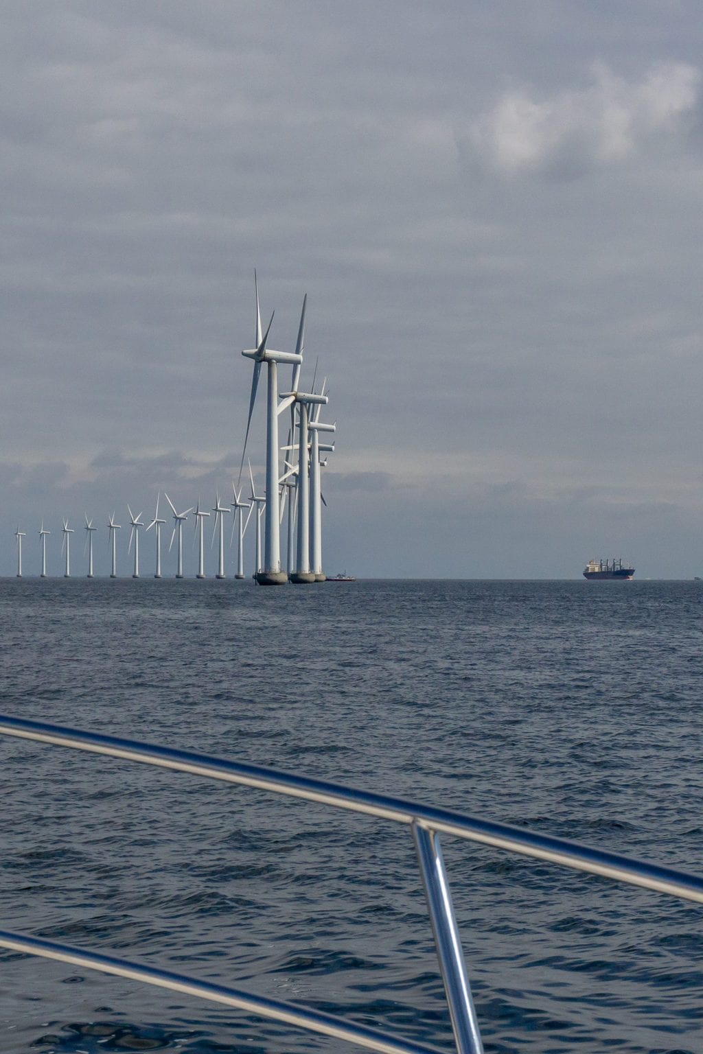 vorbei an einer langen Reihe von Windkrafträdern
